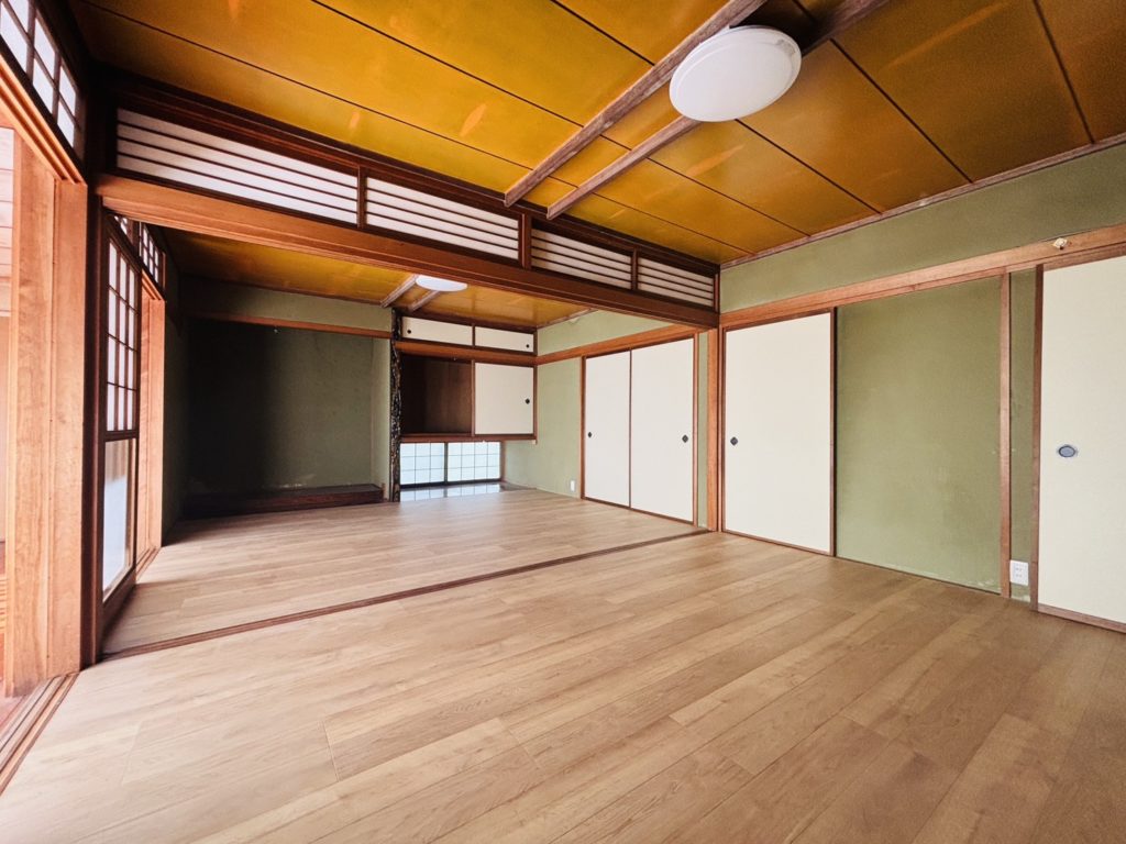 価格をおさえたいというところからキッチンはクリーニング+内装工事で綺麗に明るくなりました。トイレはシロアリの被害もあり、駆除した後にリフォームを行い、トイレの雰囲気も明るくなるよう内装をご提案させていただきました。和室は畳ではなくフローリングに施工し、それに合うように電灯も交換しました。